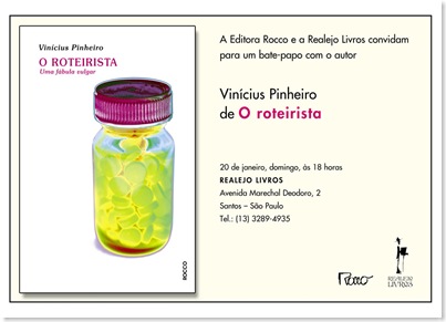 Além do bate papo com o quase famoso autor de "O Roteirista", a livraria promete para a mesma data uma apresentação de jazz. Mais um motivo para os santistas deixarem o Faustão de lado e aproveitarem a rara presença na cidade da "grande revelação da literatura dos últimos tempos", como diria um apocalíptico...